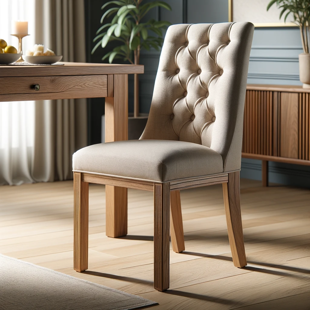 xRedescubra o charme de um jantar vintage com a cadeira de jantar Nouveau Nostalgia. O seu encosto tufado e os estofos em linho bege evocam uma sensação de nostalgia, ao mesmo tempo que se adaptam perfeitamente aos espaços de jantar contemporâneos. A moldura de carvalho maciço com acabamento em nogueira adiciona calor e durabilidade. Esta cadeira tornará cada refeição um evento elegante.