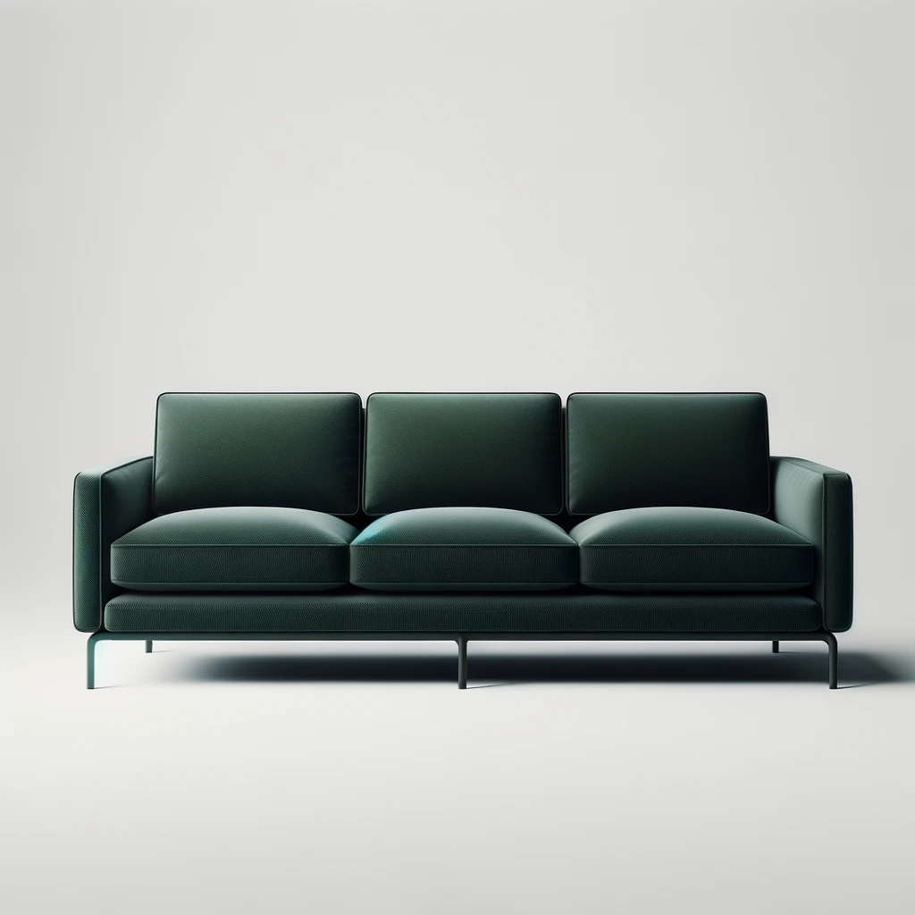 xApresentando o sofá de luxo de três lugares Obsidian Elegance, um amálgama harmonioso de conforto e estilo, projetado para elevar o seu espaço de vida. O sofá apresenta almofadas macias envoltas em um tecido vibrante que atrai calor e aconchego, combinadas com uma moldura verde escura opulenta que ressoa com elegância atemporal. Suas robustas pernas de madeira proporcionam suporte inabalável, garantindo durabilidade e mantendo um toque de sofisticação.